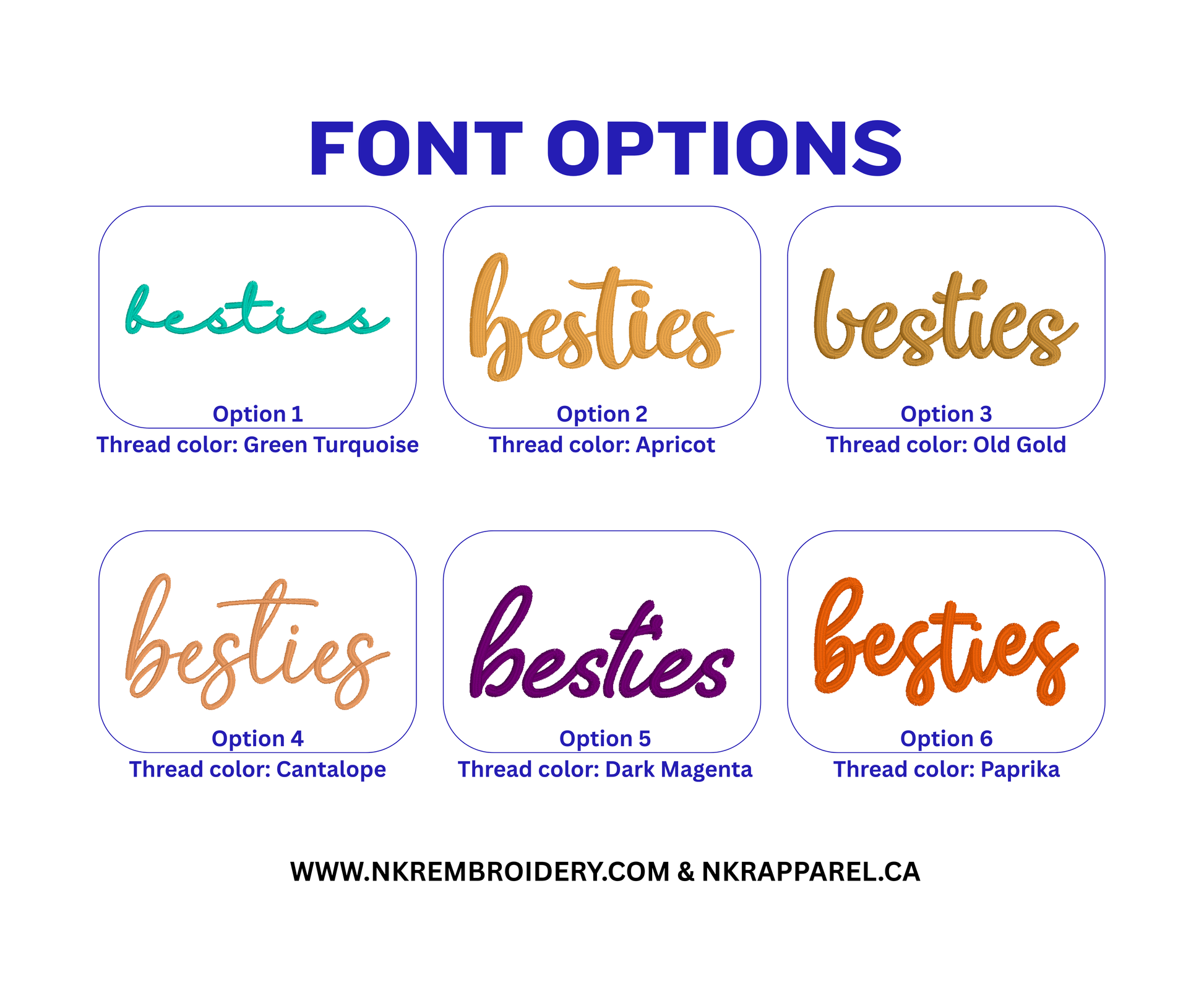 Your bestie is more than just a friend, they're a sister and a confidante. Your friendship is unbreakable, you've shared countless memories and laughed until your side hurts. Add something a little extra to your friendship with our custom embroidered bestie sweatshirt / hoodie. Customized your way - creating many more memories.