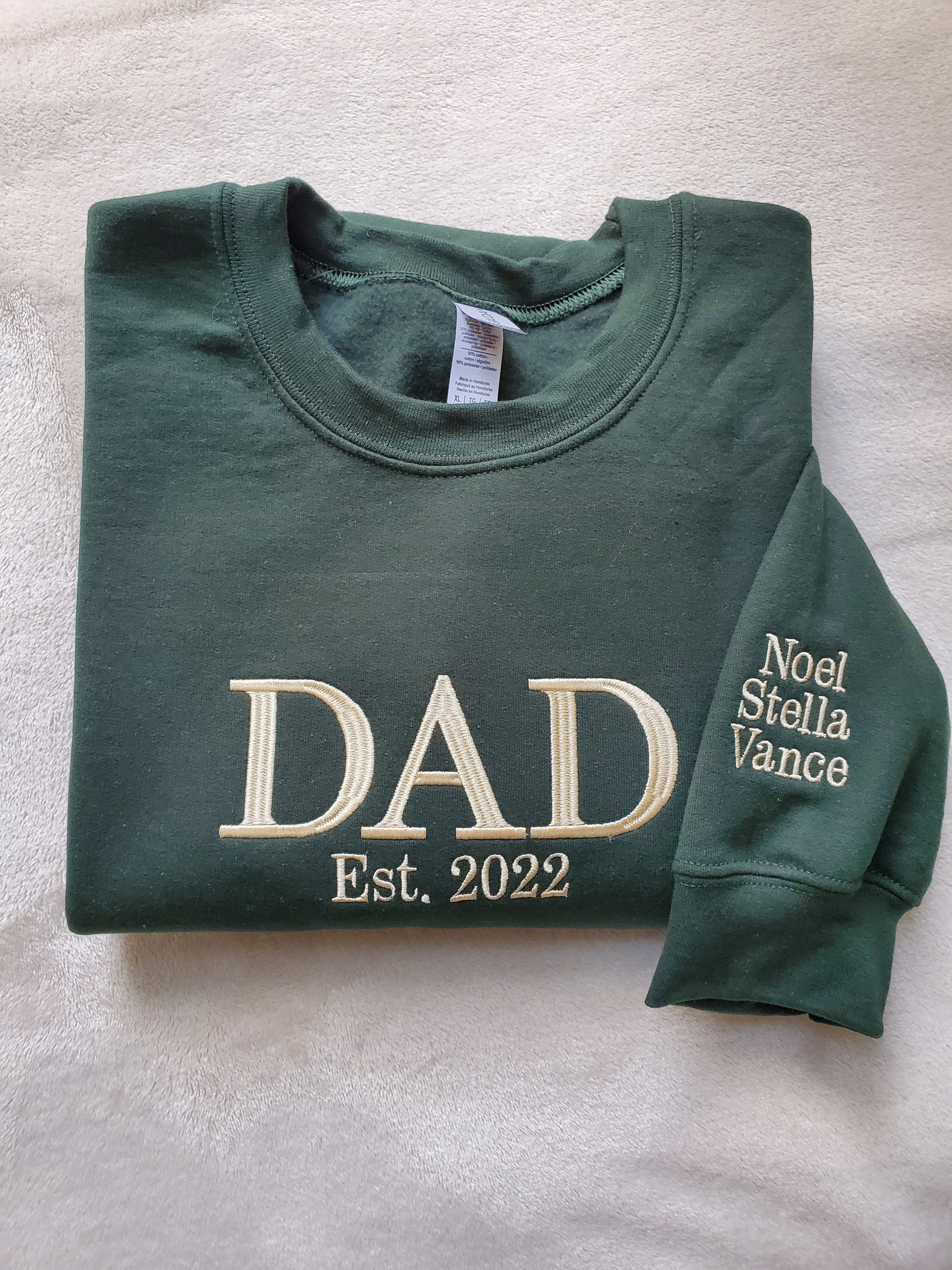 Custom Embroidered Mom and Dad Sweatshirt with kids names on the sleeve, Perfect gift for new Mom and Dad for Mother's Day or Father's Day