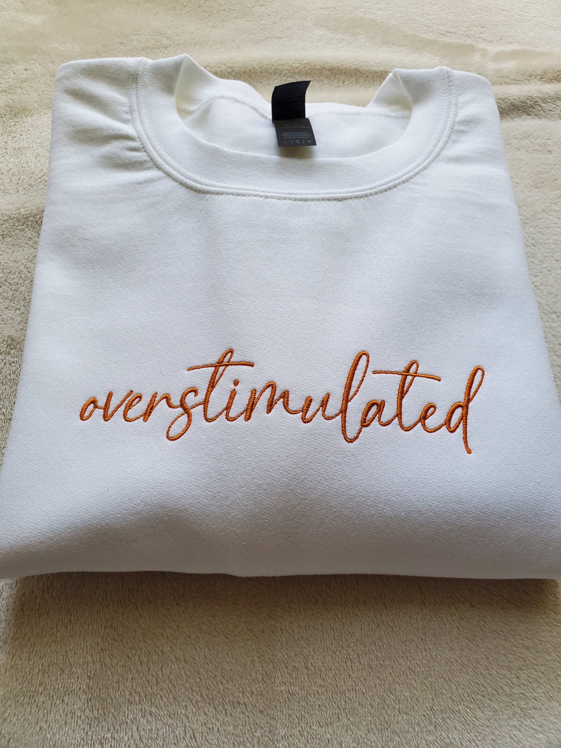 Custom Embroidered Overstimulated, Anxious, Dramatic Sweatshirt. Anxiety, Mental Health Sweater