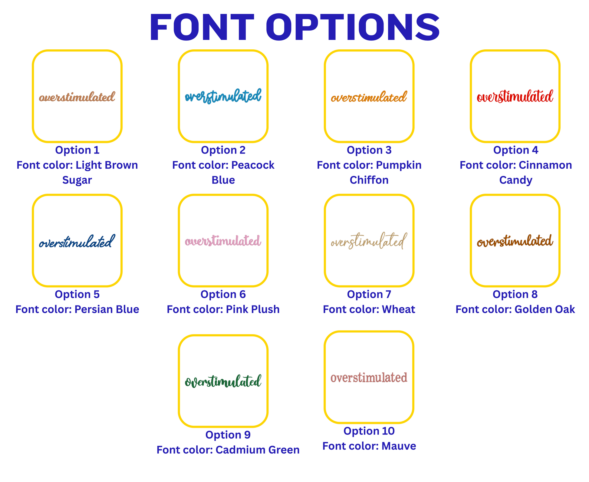 2. Font Option and Thread Color, Example - Option 4 and Olive Green