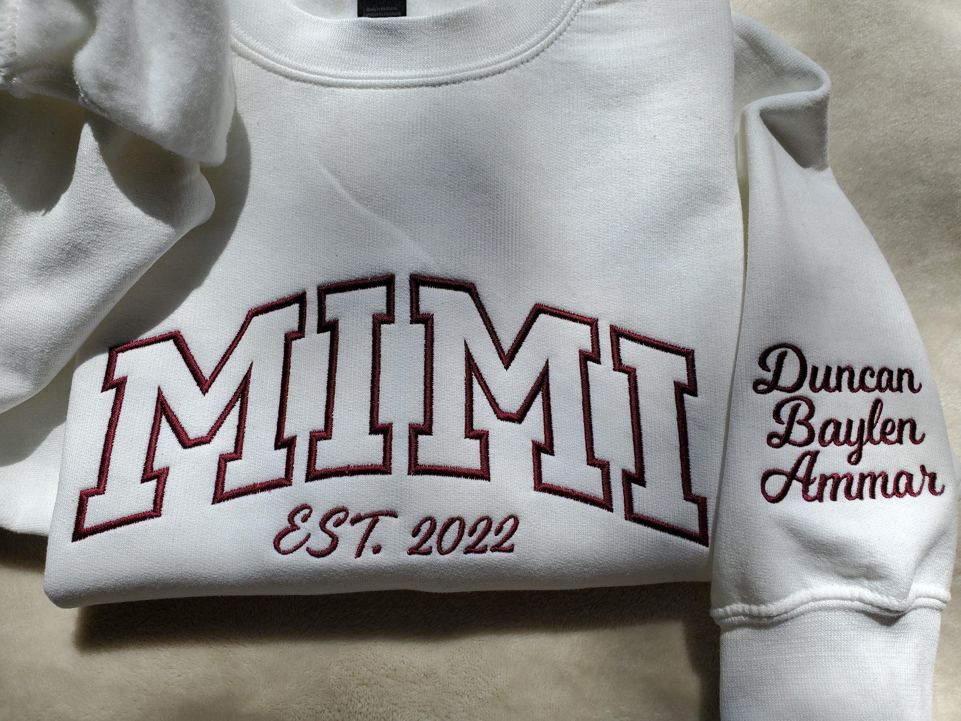 Mimi, Nana, Gigi, Custom Embroidered Sweatshirt with Grandkids Names on the Sleeve. Perfect personalized Sweater Gift for your special Grandma, Grandpa, Grammy Lovey, Mom or Gram